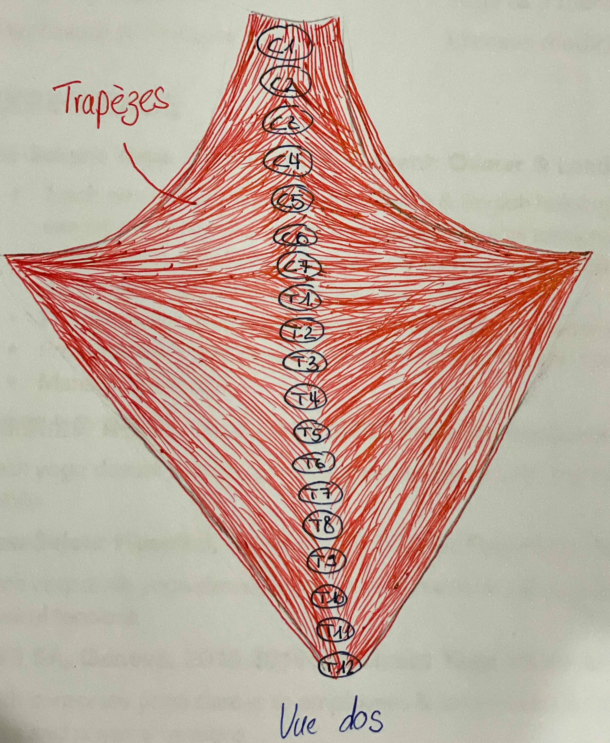 Comme on l’a vu, le psoas, le diaphragme et les trapèzes sont connectés, en particulier au niveau de la vertèbre thoracique T12.
